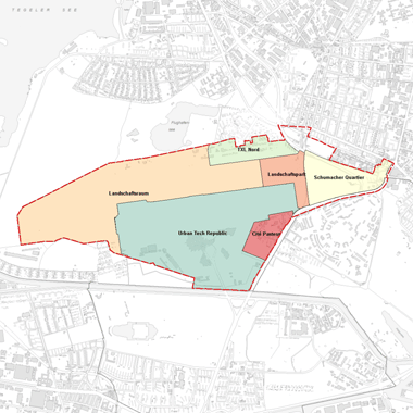 Der Datenbestand umfasst sechs informelle Teilräume sowie die Projektgrenze des Stadtentwicklungsgebiets um den ehemaligen Flughafen Tegel bzw. heutigem Projektgebiet Berlin TXL. Die Grenzen der Teilräume dienen lediglich der Orientierung und nicht planerischen Zwecken. Die offizielle Projektgrenze umfasst das Gebiet von außergewöhnlicher stadtpolitischer Bedeutung gemäß § 9 AG BauGB.