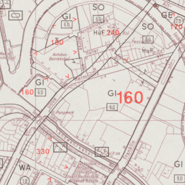 Einzelne Kartenblätter des Bodenrichtwertatlas basierend auf den Rasterdaten des Gutachterausschusses für Grundstückswerte in Berlin vom 31.12.1976. Die Bodenrichtwerte sind in DM/m² angegeben!