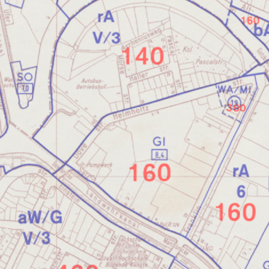 Einzelne Kartenblätter des Bodenrichtwertatlas basierend auf den Rasterdaten des Gutachterausschusses für Grundstückswerte in Berlin vom 31.12.1978. Die Bodenrichtwerte sind in DM/m² angegeben!