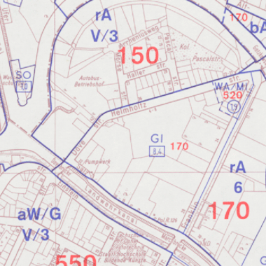 Einzelne Kartenblätter des Bodenrichtwertatlas basierend auf den Rasterdaten des Gutachterausschusses für Grundstückswerte in Berlin vom 31.12.1980. Die Bodenrichtwerte sind in DM/m² angegeben!