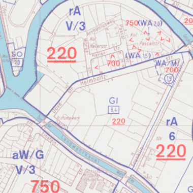 Einzelne Kartenblätter des Bodenrichtwertatlas basierend auf den Rasterdaten des Gutachterausschusses für Grundstückswerte in Berlin vom 31.12.1984. Die Bodenrichtwerte sind in DM/m² angegeben!