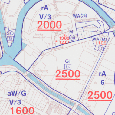 Einzelne Kartenblätter des Bodenrichtwertatlas basierend auf den Rasterdaten des Gutachterausschusses für Grundstückswerte in Berlin vom 31.12.1990. Die Bodenrichtwerte sind in DM/m² angegeben!