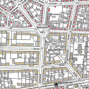 Sachdaten des räumlichen Bezugssystems im Maßstab 1 : 5.000 für Daten des Umweltatlas aus statistischen Blöcken des regionalen Bezugssystems (RBS) mit Teilblöcken des Informationssystems Stadt und Umwelt (ISU), Stand 31.12.2010.