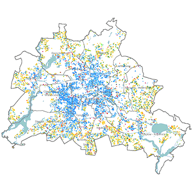 Karte der durch den Gutachterausschuss für Grundstückswerte in Berlin zum 01.01.2023 ermittelten Bodenrichtwerte.