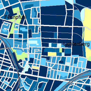 Flächennutzung auf Grundlage der Blockkarte 1 : 5.000 (ISU5, Raumbezug Umweltatlas 2005).