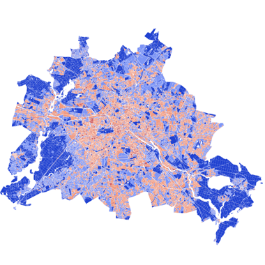 Einwohnerdichte in Einwohner/ha auf Grundlage der Blockkarte 1 : 5.000 (ISU5, Raumbezug Umweltatlas 2010), Erfassungsstand 31.12.2011.