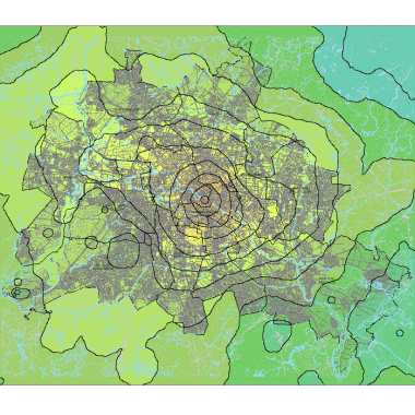 Vergleich der Wirkungen der städtischen Struktur auf die Klimaparameter im Vergleich zum unbeeinflußten Umland auf Grundlage der Blockkarte 1 : 50.000 (ISU50, Raumbezug Umweltatlas 1990), Bearbeitungsstand Januar 2001).