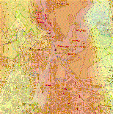 Mächtigkeit der stark bis mittel wasserdurchlässigen Schicht von der Oberfläche bis zu einer Tiefe von 5,0 m unter Geländeoberkante sowie zwischen einer Tiefe von 1,0 bis 5,0 m unter Geländeoberkante. Informationshilfe für Maßnahmen zur Versickerung, sie entbindet nicht von der Pflicht für einzelne Projekte die hydraulischen Standortvoraussetzungen für Versickerungsanlagen durch Sondierung oder Bohrungen vor Ort nachzuweisen.