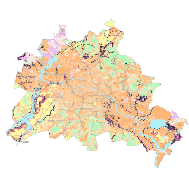 Bodengesellschaften und Bodenarten unversiegelter Böden, Konzeptkarte ermittelt aus Bodenuntersuchungen und Nutzungsarten auf Grundlage der Blockkarte 1 : 5.000 (ISU5, Raumbezug Umweltatlas 2010), Bearbeitungsstand November 2012.