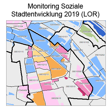 Das MSS 2021 enthält die drei Index-Indikatoren Arbeitslosigkeit, Transferbezug und Kinderarmut, die zur Bildung eines Status- und eines Dynamik-Index sowie des Gesamtindex Soziale Ungleichheit herangezogen werden. Zusätzlich werden 17 Kontext-Indikatoren und der Decker unbewohnte Flächen angeboten. Datenstand: 31.12.2018-31.12.2020. Hinweis: Kontext-Indikatoren K08, K14 und K15 liegen nur auf LOR-Ebenen mit Stand 2017 (447 PLR) vor.