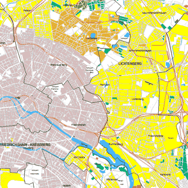 Informationen zur Art der Kanalisation und zu den Einzugsgebieten der Regenwasserkanalisation auf Grundlage der Blockkarte 1 : 50.000 (ISU50, Raumbezug Umweltatlas 2001), Bearbeitungsstand Oktober 2005.